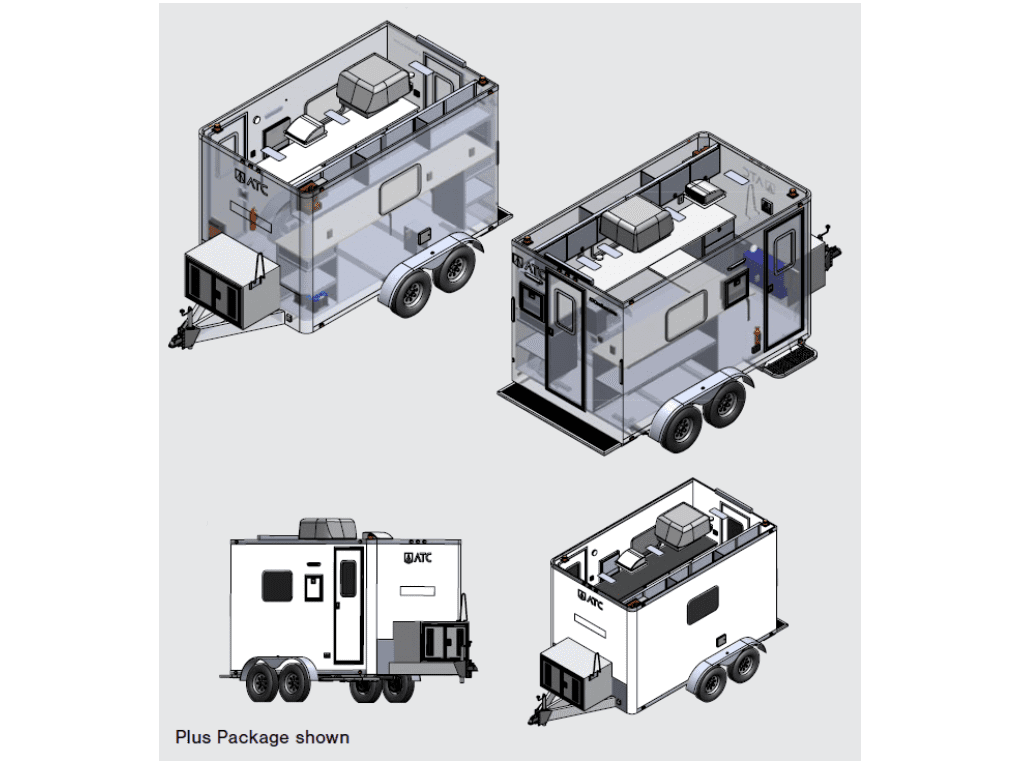 ATC’s 300F Fiber Optic Splicing Trailers are built with an 8″ aluminum mainframe for extreme durability. They come standard with heating and cooling to keep you comfortable in any weather.