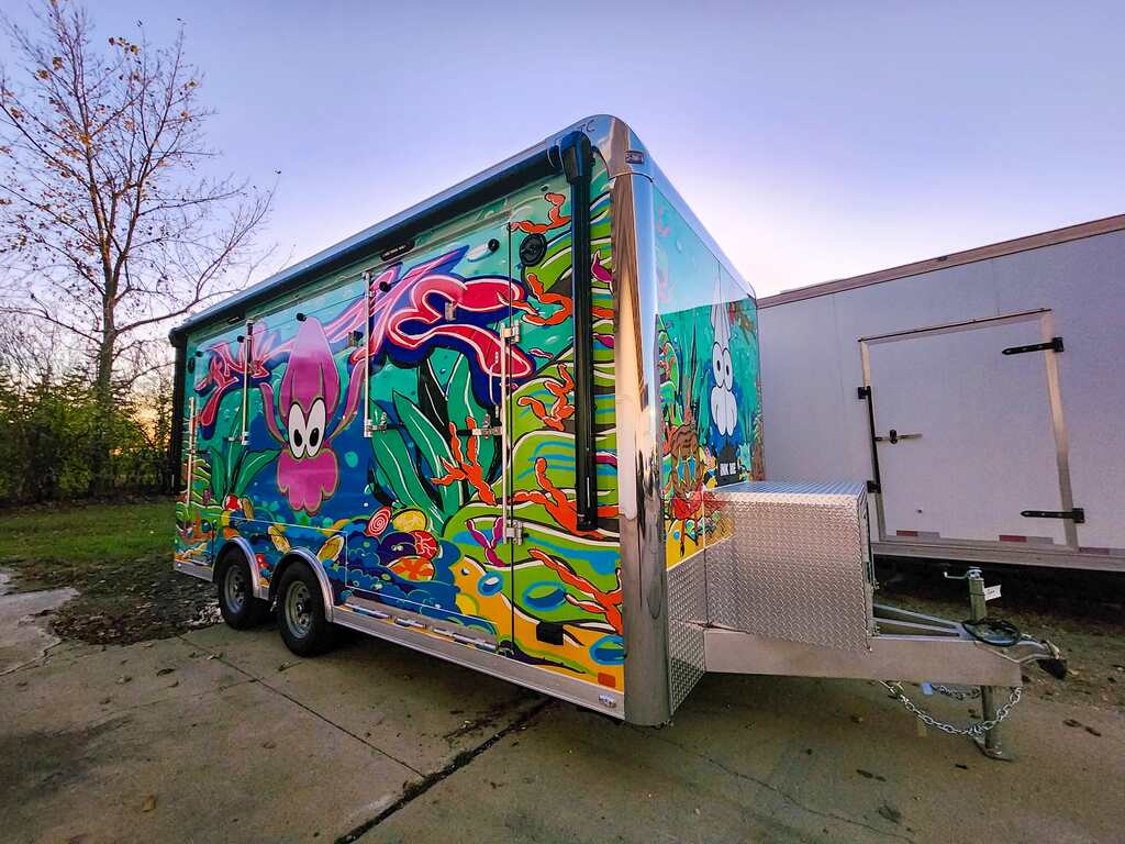 A full graphic wrap can really tell the story of your brand. We can wrap the exterior, interior, and even ancillary items or your tow vehicle to convey your brand messaging. Send us your artwork, or we can put you in touch with a designer to create the look you need.