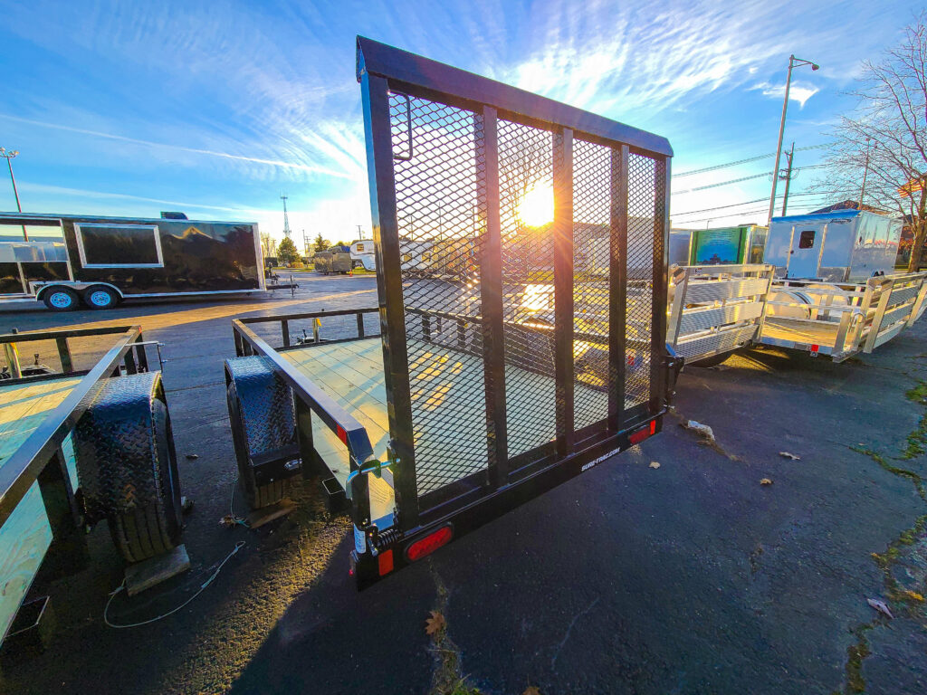 The utilities we carry typically range from 5’x8′ single axle to 7’x16′ tandem axle. While we stock mostly steel trailers because they tend to be less expensive, sometimes we do offer aluminum.